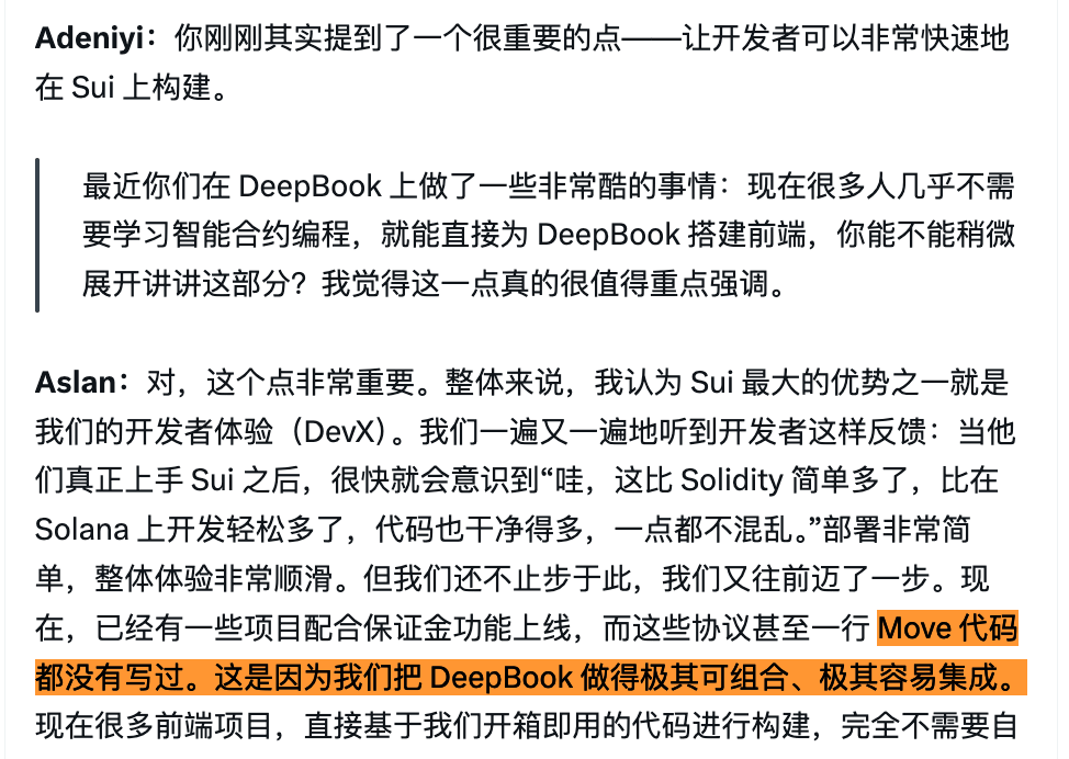 现在已经有团队在 DeepBook 上搭建保证金交易前端,“甚至一行 Move 代码都没有写过。”