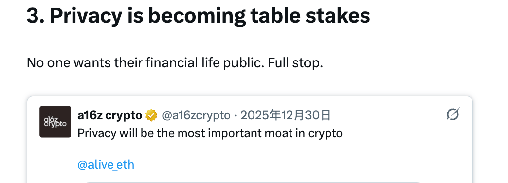 我觉得,这更像是给最近无论是 a16z 还是 Vitalik 强调的隐私,一个前置条件: